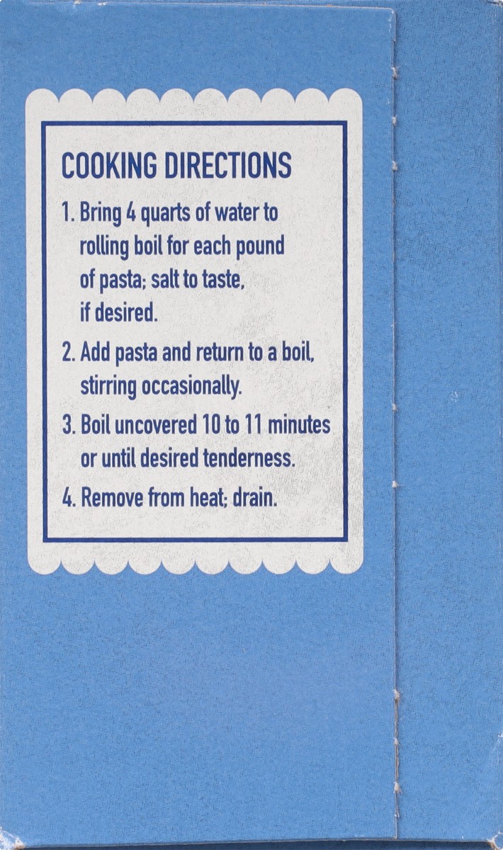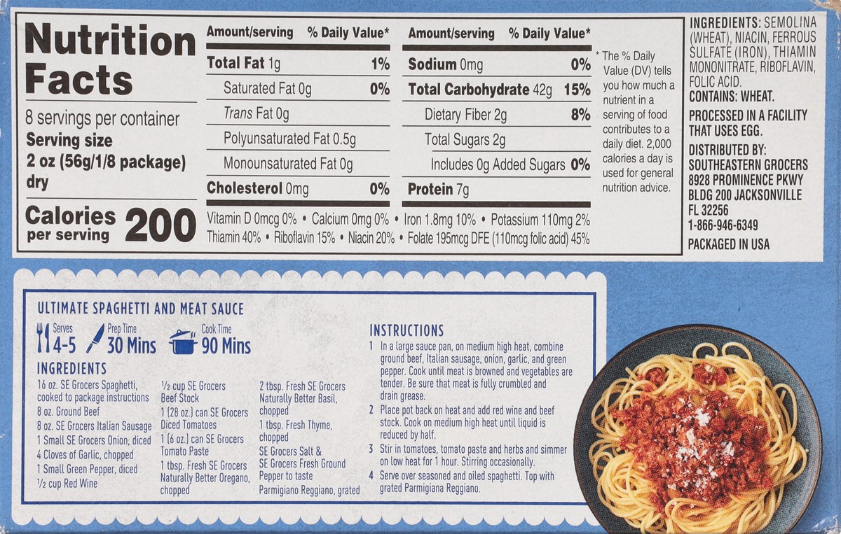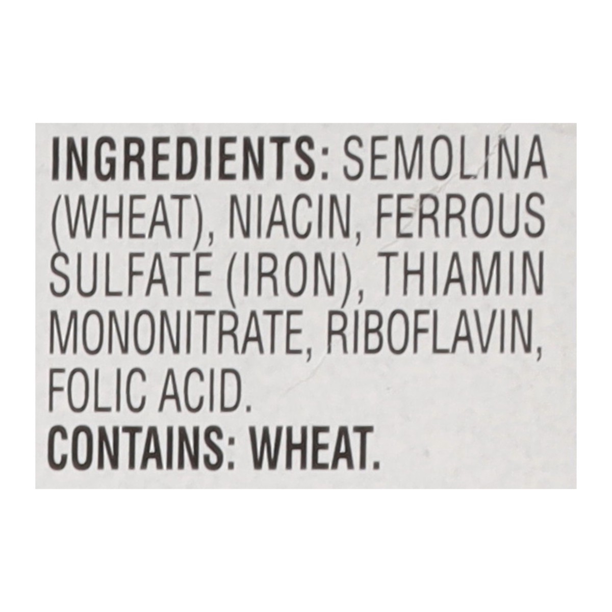 Semolina (Wheat), Niacin, Ferrous Sulfate (Iron), Thiamin Mononitrate, Riboflavin, Folic Acid.