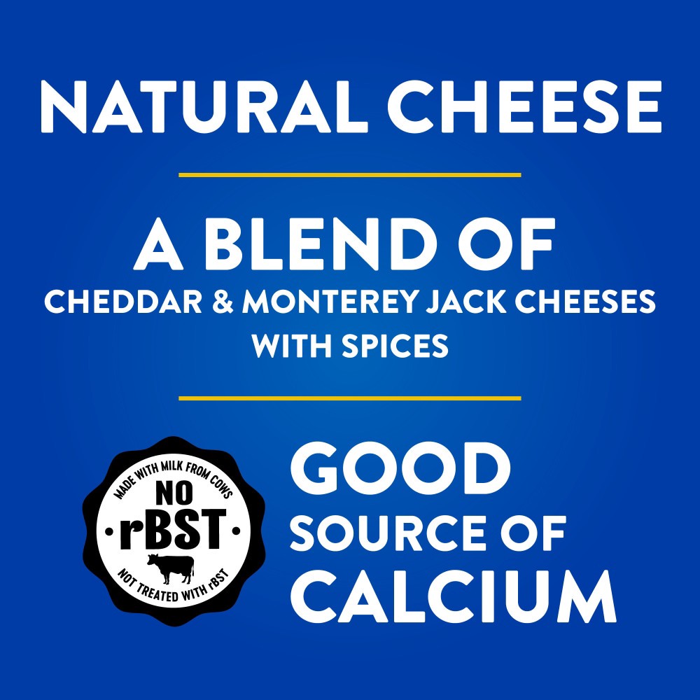 Cheddar Cheese (Pasteurized Milk, Cheese Culture, Salt, Enzymes, Color Added), Monterey Jack Cheese (Pasteurized Milk, Cheese Culture, Salt, Enzymes), Contains 2% or Less of: Spices, Salt, Onion Powde…
