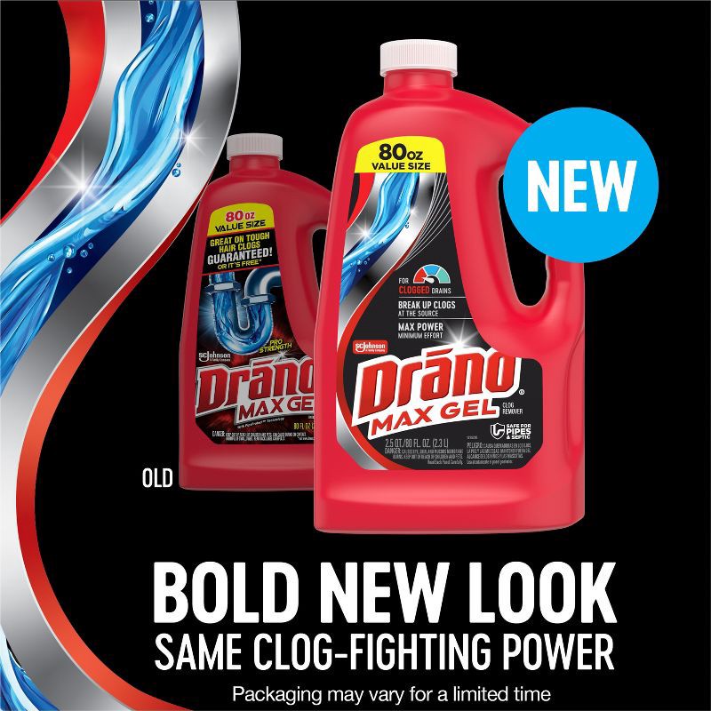 Drano Max Gel Clog Remover is the #1 Selling Gel Drain Cleaner*. Drano thick drain unclogger formula pours right through standing water to cling to the toughest gunky clogs to blast them fast.*S.C. Jo…