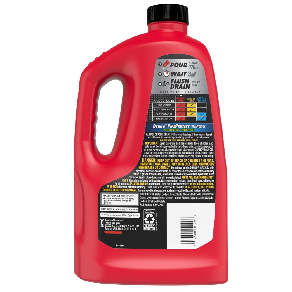 Drano Max Gel Clog Remover is the #1 Selling Gel Drain Cleaner*. Drano thick drain unclogger formula pours right through standing water to cling to the toughest gunky clogs to blast them fast.*S.C. Jo…