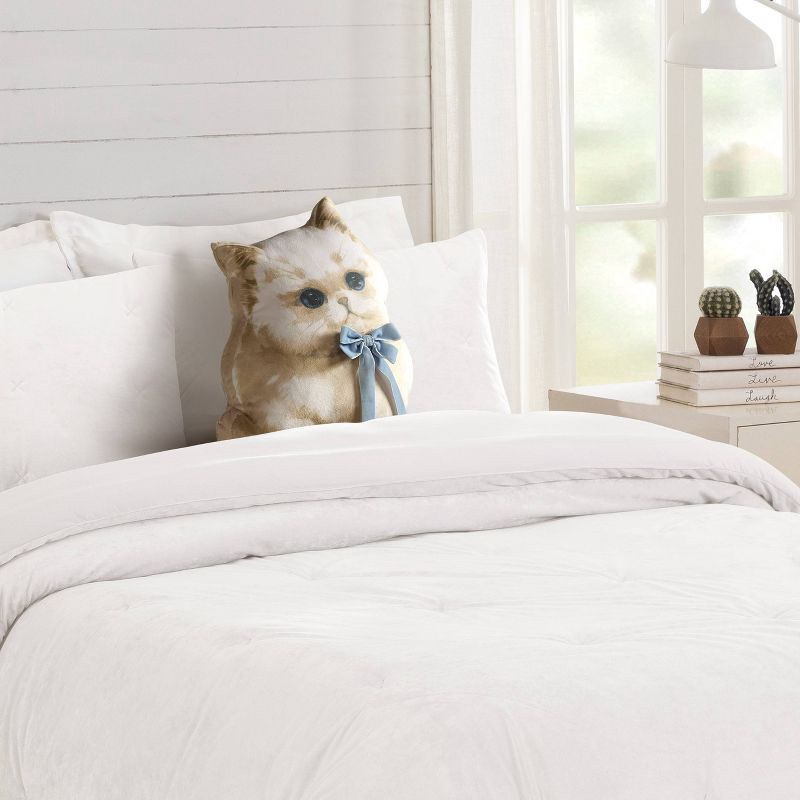 Makers Collective Cat with Blue Bow Novelty Throw Pillow