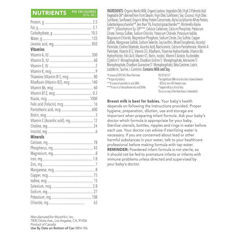 Munchkin Baby Formula Made with Organic Milk - 25.8oz: Powdered, Brain Development, Immune System Support, Eye Development