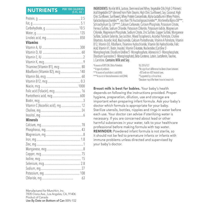 - Clinically Proven Comfort: In a 16-week randomized, double-blind clinical study, babies fed Munchkin® formula showed fewer signs of gas and tummy discomfort compared to the control formula—designed to be gentle on tiny tummies for softer, more comfortable stools.