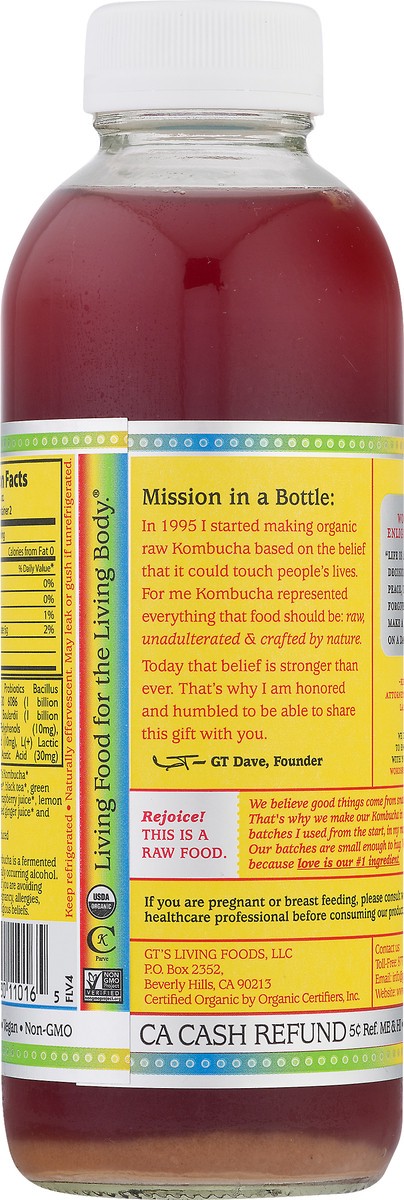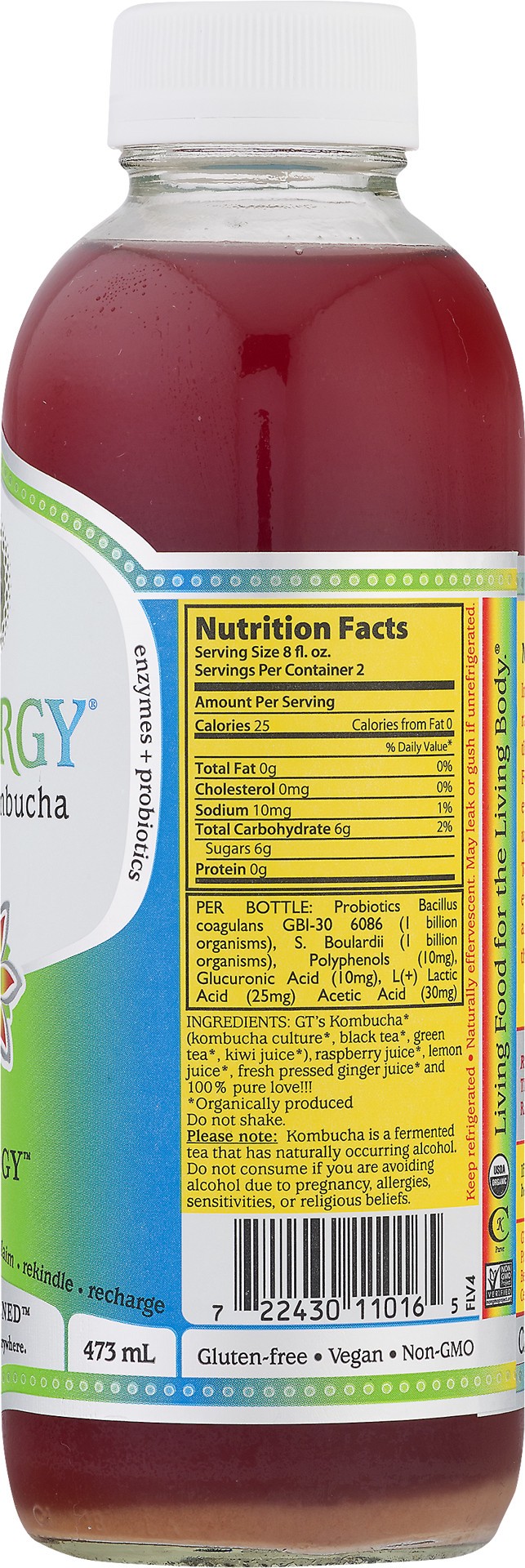 Gt's Kombucha [Kombucha Culture (Organically Produced), Black Tea (Organically Produced), Green Tea (Organically Produced), Kiwi Juice (Organically Produced)], Raspberry Juice (Organically Produced), …