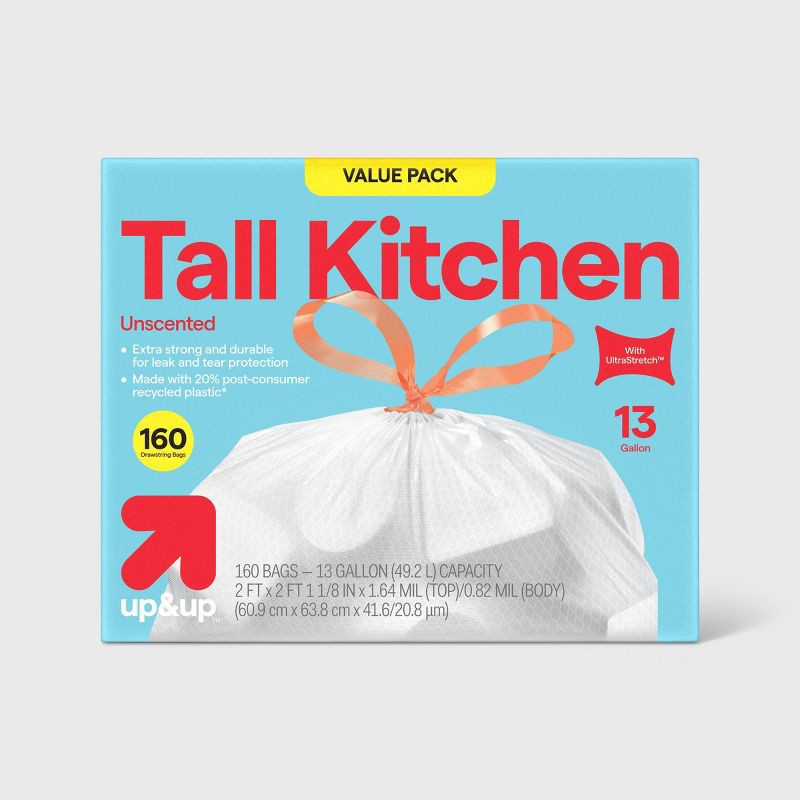 Tall Kitchen Drawstring Trash Bags - Unscented - 13 Gallon - 160ct - up&up™