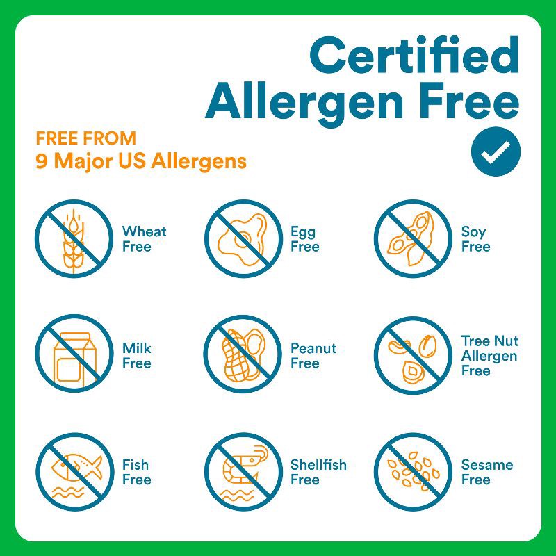 Features: Tree Nut Free, Non-GMO, Peanut-Free, Soy-Free, Wheat Free, No High Fructose Corn Syrup, No Artificial Flavors, Colors or Preservatives, Does Not Contain Egg, Dairy-Free