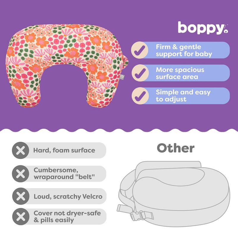 The beloved Boppy® Nursing Pillow is designed to make feeding time more comfortable, supportive, and stress-free for both you and your baby. Its firm, ergonomic, patented design offers a higher surfac…