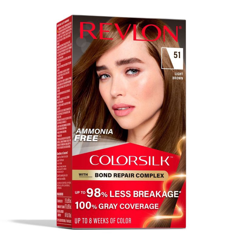 Revlon ColorSilk Permanent Hair Color with Bond Repair Complex - 51 Light Brown - 4.4 fl oz: Ammonia-Free, Includes Applicator & Gloves