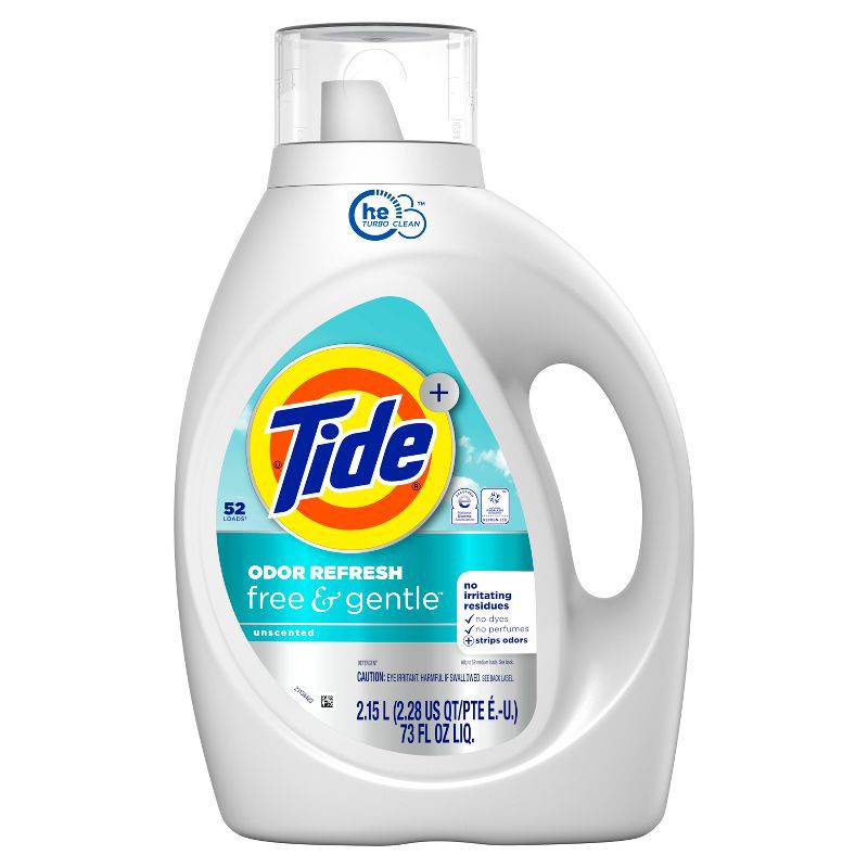- Includes one 73 fl oz bottle of Tide Free and Gentle Odor Refresh Laundry Detergent Liquid, enough for 52 loads