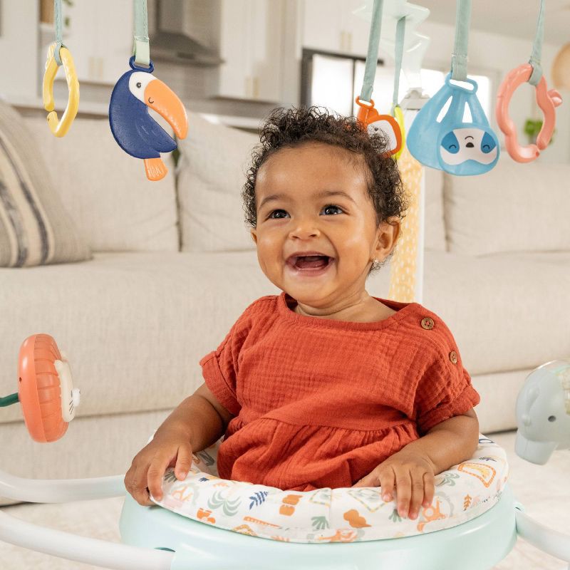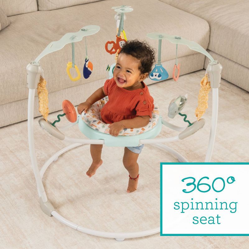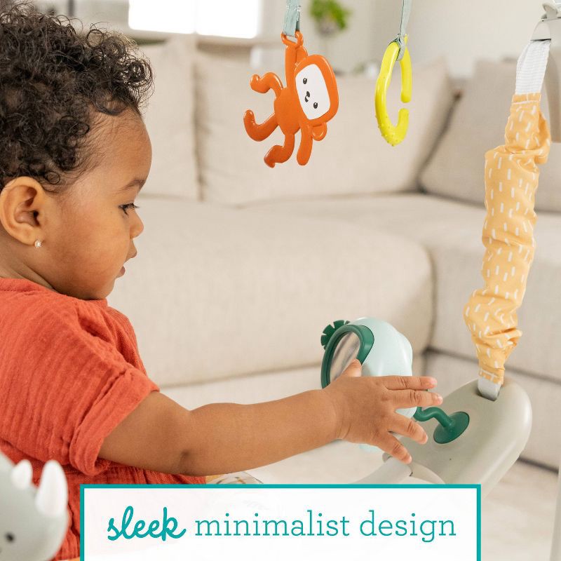 Keep baby moving and entertained with the Bounce and Bop Play Jumper. The sleek minimalist design creates a light airy look that fits beautifully into your home. A 360 degree rotating seat lets baby e…