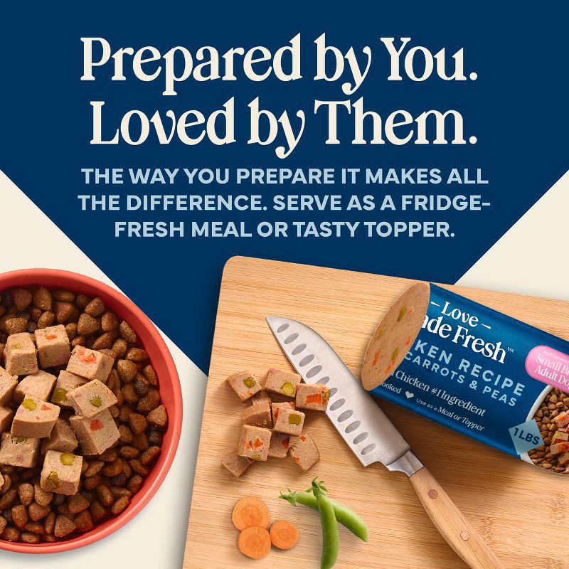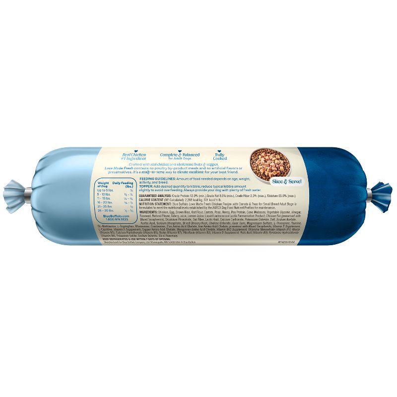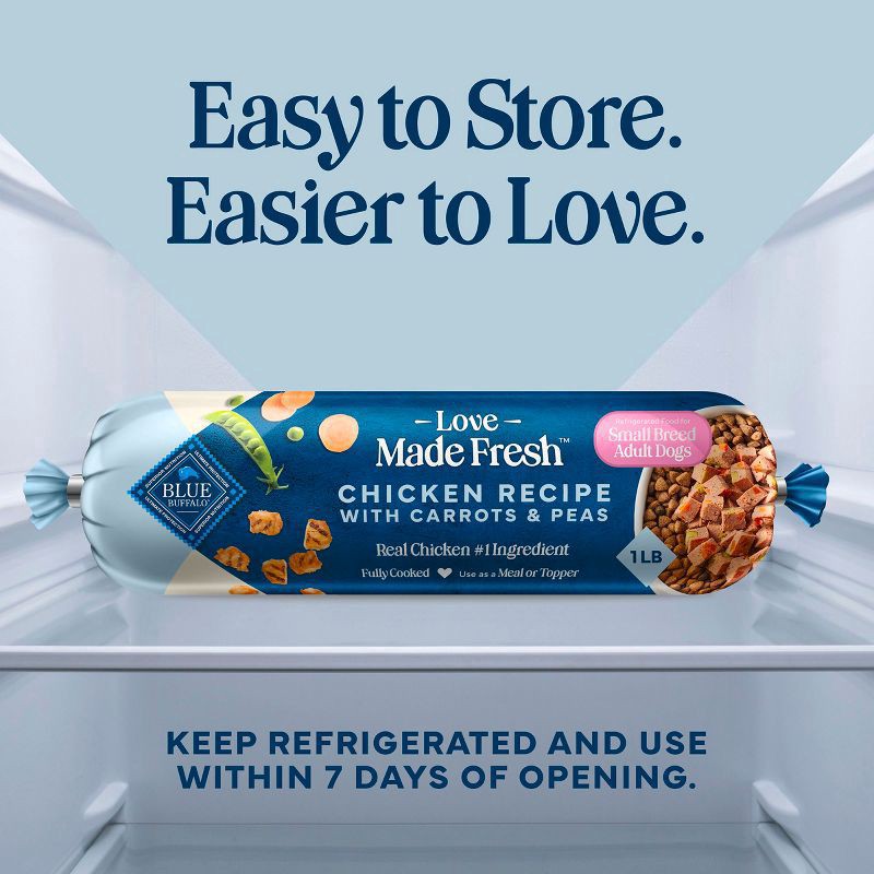 Blue Buffalo Love Made Fresh Natural Adult Dog Food for Small Breed Adult Dogs, Refrigerated , Chicken With Carrots and Peas, Fresh Dog Food, Ready-To-Serve, 1-lb Roll