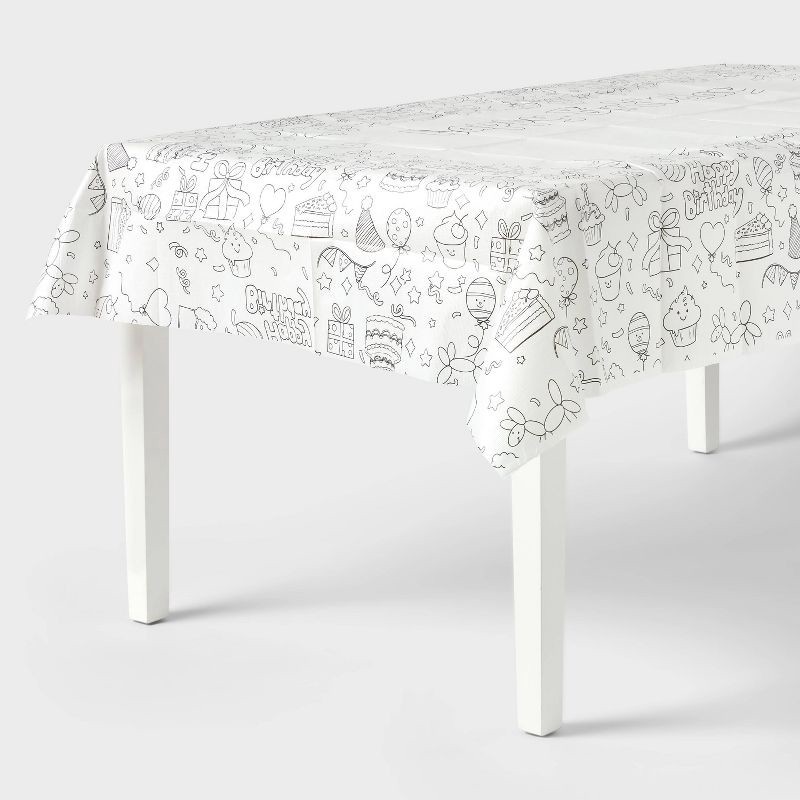 - Playful Happy Birthday table cover with color-your-own design