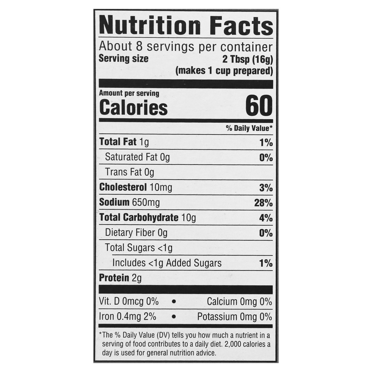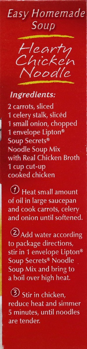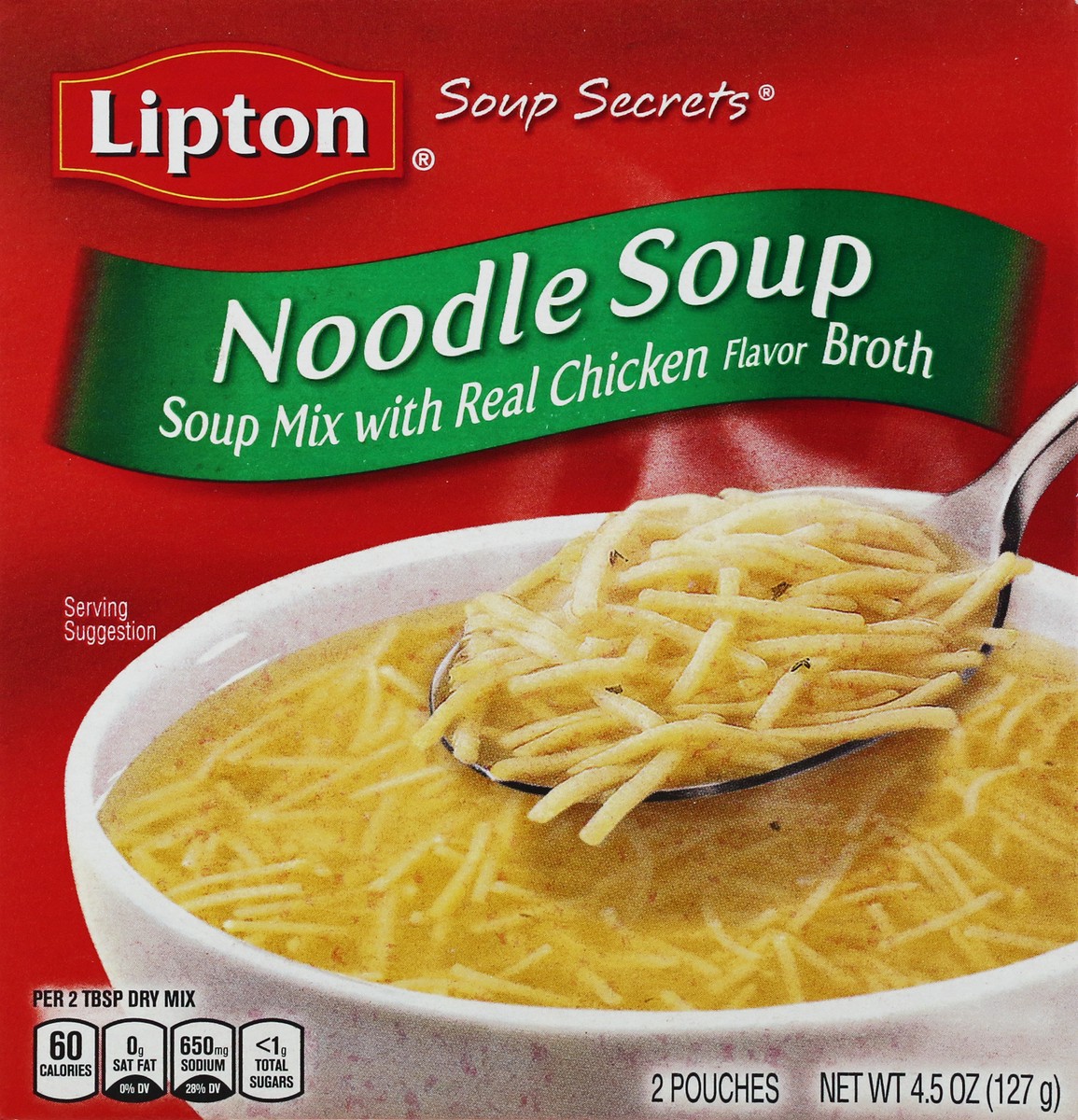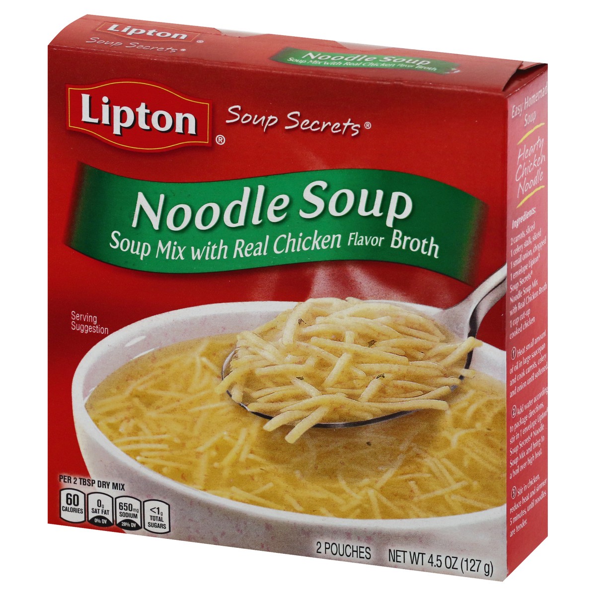 Soup mix with real chicken flavor broth. Per 2 tbsp Dry Mix: 60 calories; 0 g sat fat (0% DV); 650 mg sodium (28% DV); less than 1 g total sugars. Bring family together with Lipton Soup! Warm, soothin…