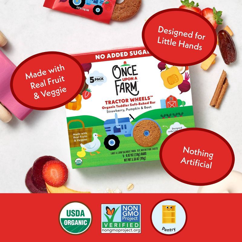 Once Upon a Farm Tractor Wheels Organic Toddler Soft Baked Bar- Strawberry Pumpkin and Beet - 10ct