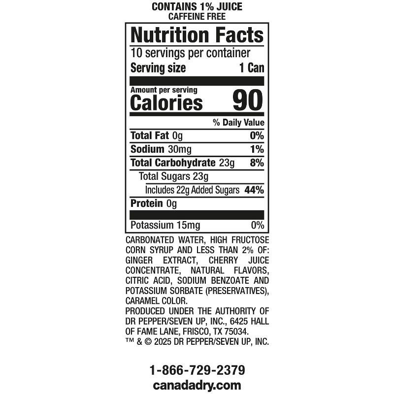 - CARBONATED SODA: Canada Dry Fruit Splash Cherry Ginger Ale, a crisp, carbonated ginger ale that tickles your senses with flavor