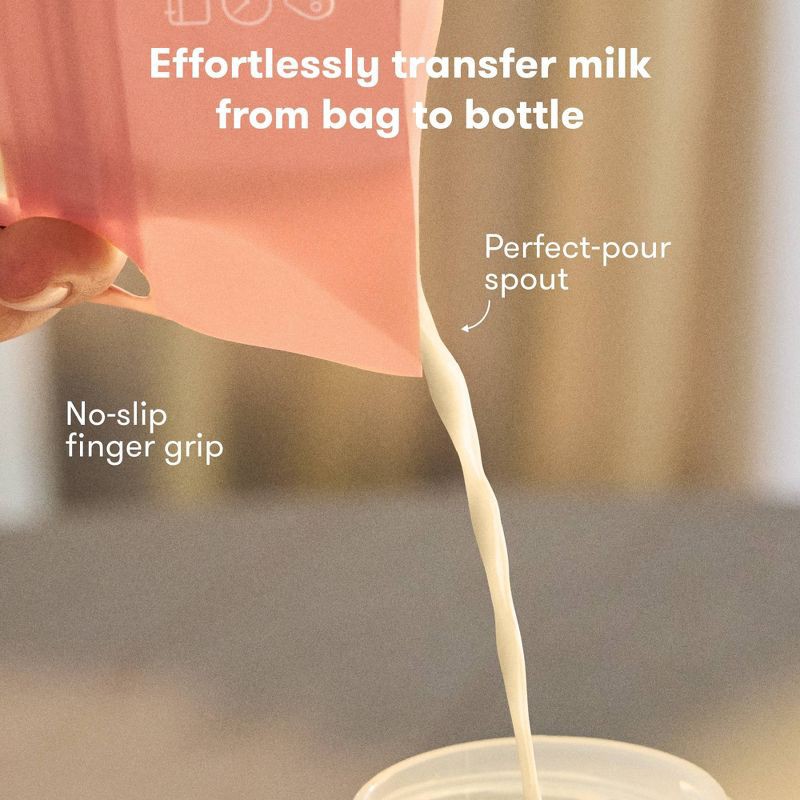 - PERFECT POUR SPOUT DESIGN: Transfer milk effortlessly from breastmilk storage bags into bottles with our engineered perfect-pour spout. The no-slip finger grip ensures secure, one-handed hold that halts accidents during busy mornings or travel.