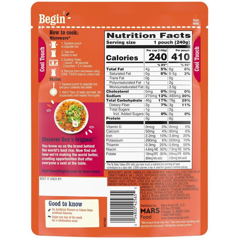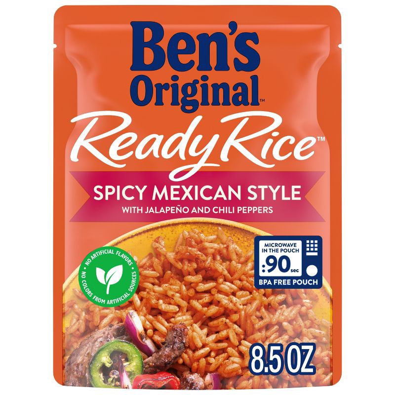 - One 8.5 oz pouch of BEN'S ORIGINAL Ready Rice Spicy Mexican Style Flavored Rice