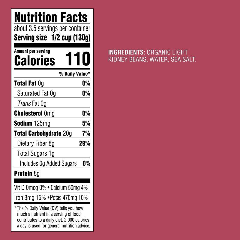 ORGANIC LIGHT KIDNEY BEANS, WATER, SEA SALT.