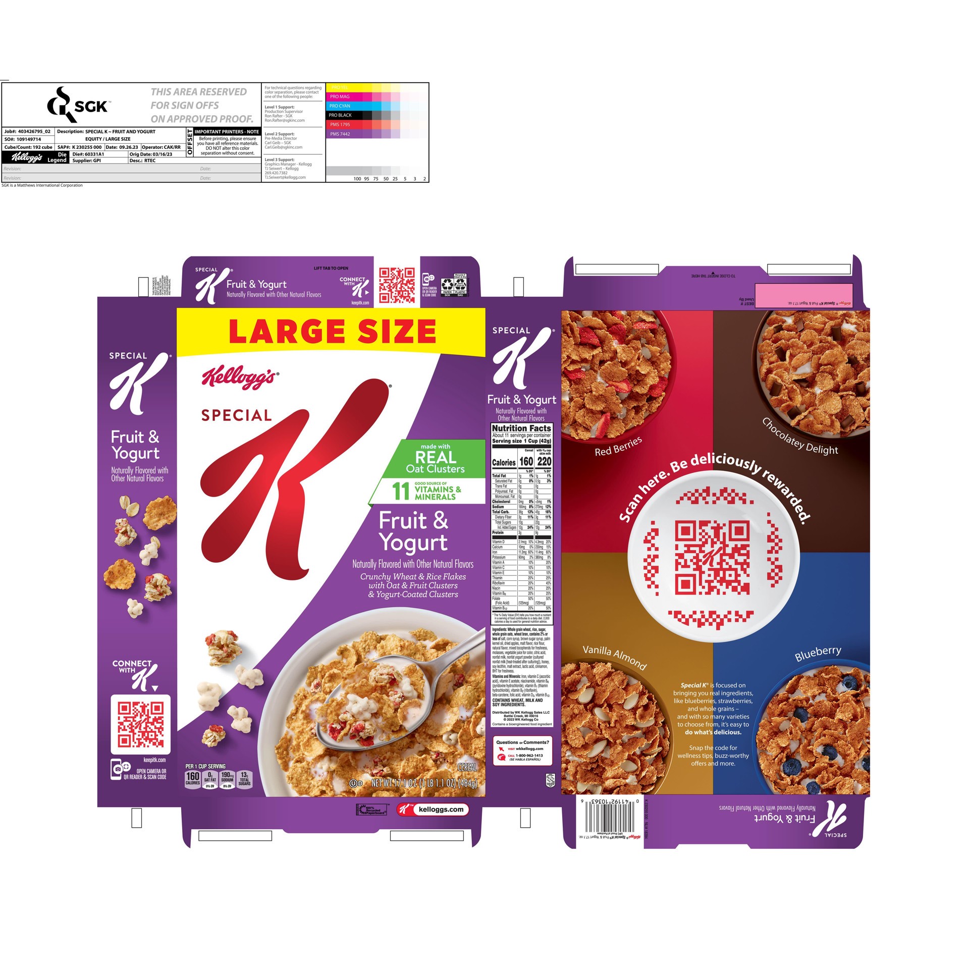 Kelloggs Special K Cereal Fruit & Yogurt 17.1oz - 17.1 Oz