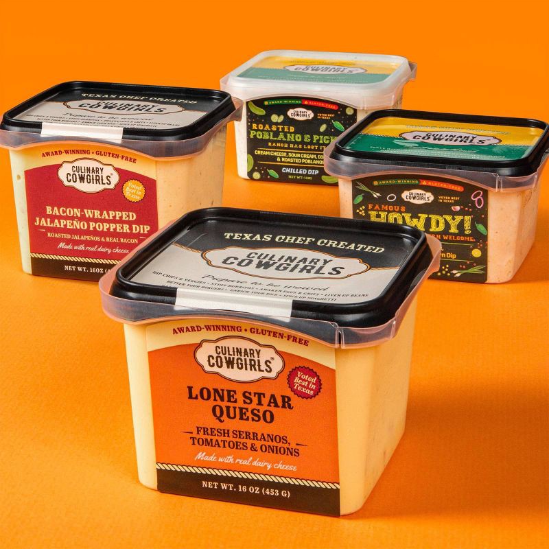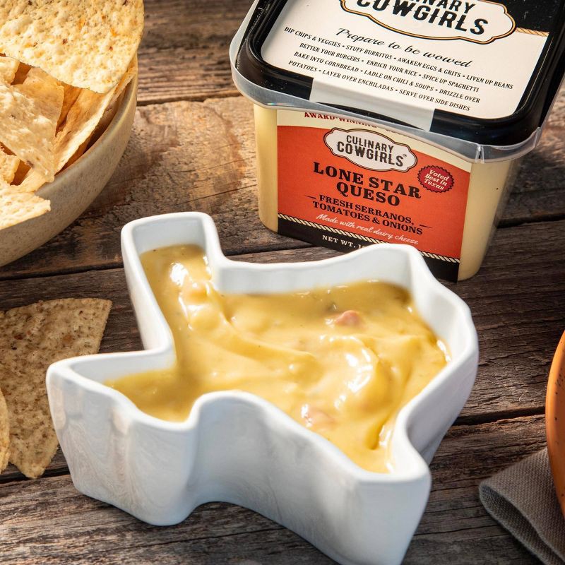 Culinary Cowgirls Lone Star Queso is made with real dairy and garden-fresh goodness. Freshly roasted serrano peppers, tomatoes and onions are blended into a creamy combination of American and Monterey…