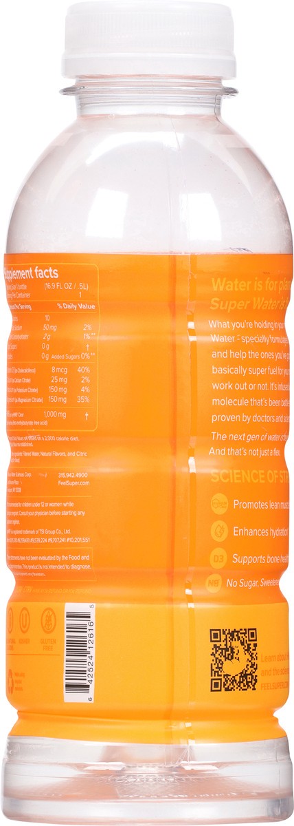 Infused Super Water. All natural flavors. Gluten free. With HMB: promotes lean muscle mass & metabolism. Vitamin D3: supports bone health. Electrolytes: enhances hydration. feelsuper.com