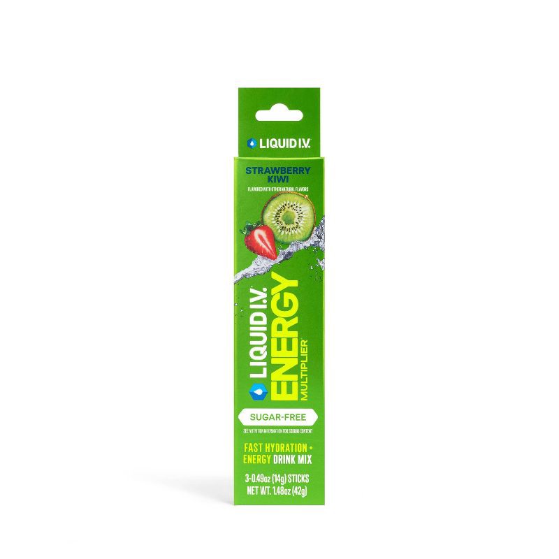 Liquid I.V. Sugar Free Energy Multiplier - Strawberry Kiwi - 3ct: Powdered Electrolyte Drinks, Caffeinated