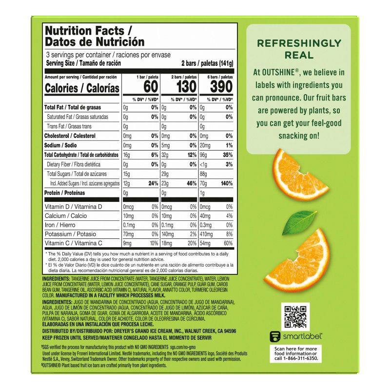 Outshine Tangerine Frozen Fruit Bars are a refreshing frozen snack bursting with delicious tangerine flavor. These gluten free Outshine bars are made with real fruit and are a good source of Vitamin C…