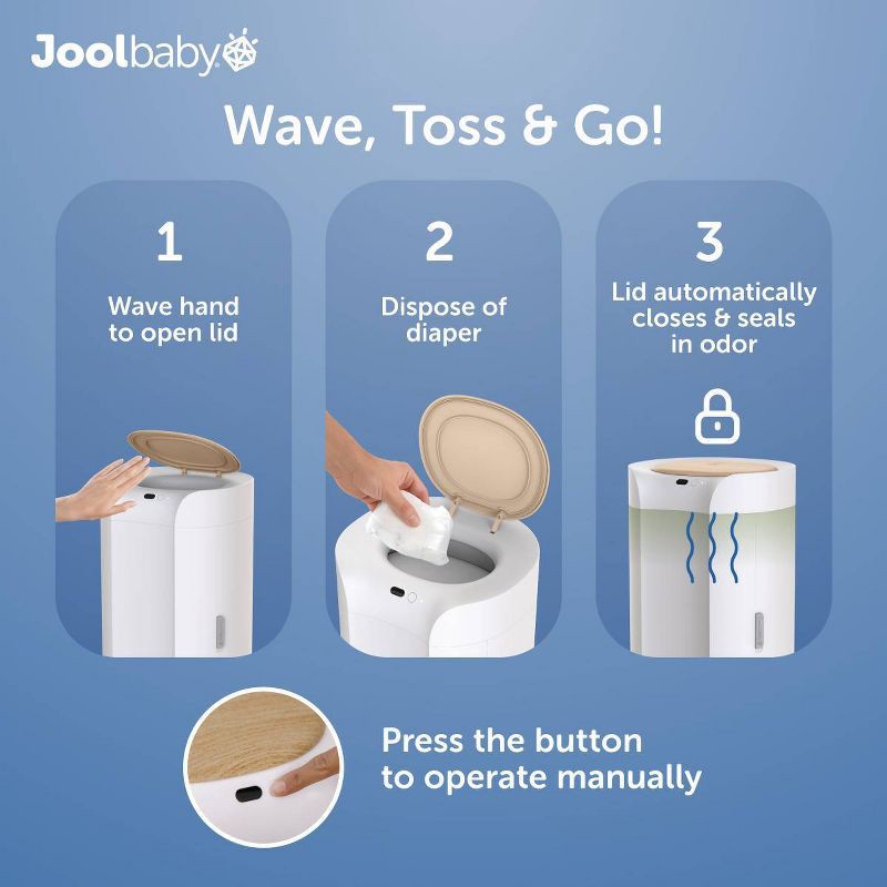 Keep your nursery fresh with the Jool Baby SmartWave Plus Touch-Free Diaper Pail. Wave to open the lid & drop the diaper through the odor-containing, double-seal trapdoor—no need to run out ten times …