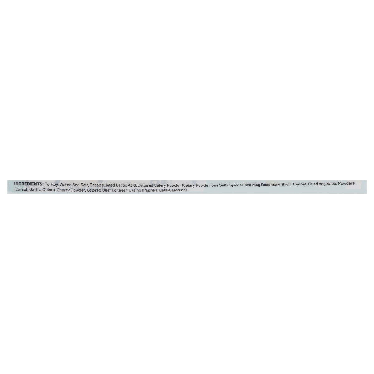 Turkey, Water, Sea Salt, Encapsulated Lactic Acid, Cultured Celery Powder (Celery Powder, Sea Salt), Spices (Including Rosemary, Basil, Thyme), Dried Vegetable Powders (Carrot, Garlic, Onion), Cherry …