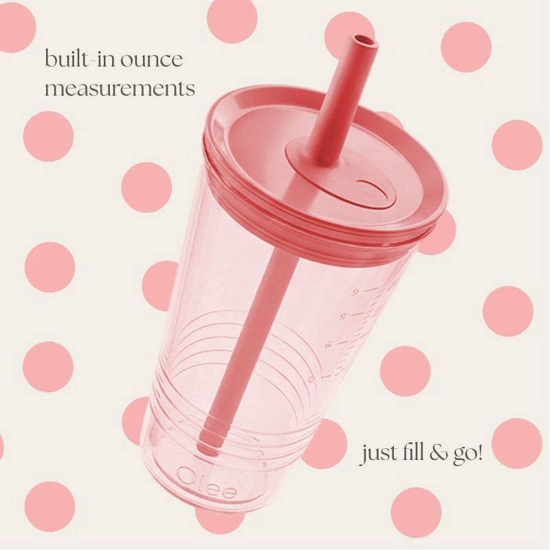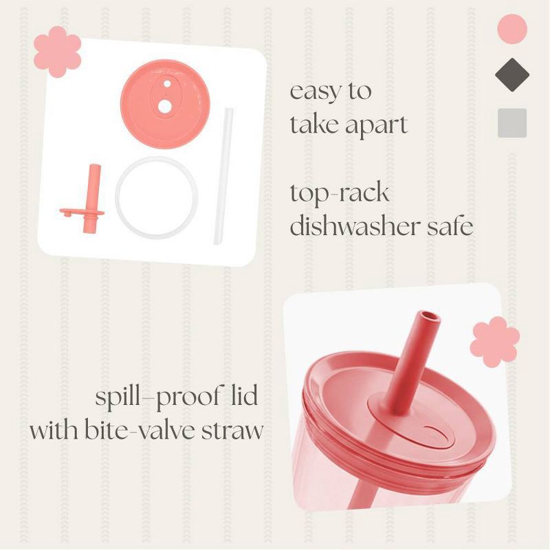Olee Sippy Cup Tumbler with Straw + Lid Silicone Baby Bottle - Melon Pink - 9 fl oz: Level 4 Fast Flow, BPA-Free