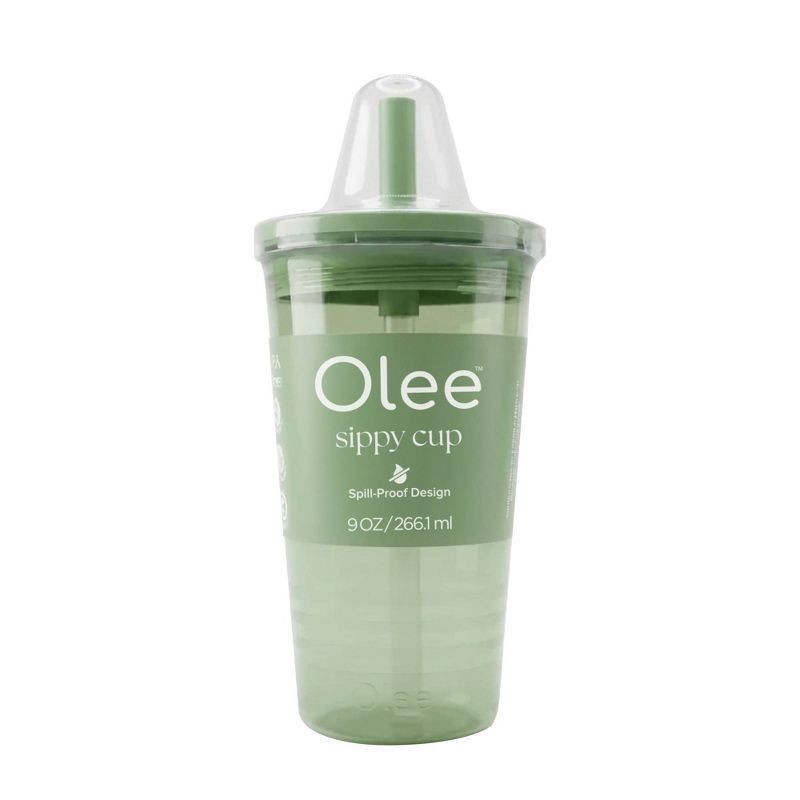 Olee Sippy Cup Tumbler with Straw + Lid Silicone Baby Bottle - Sage Green - 9 fl oz: BPA-Free, Level 4 Nipple, 0.25 lb