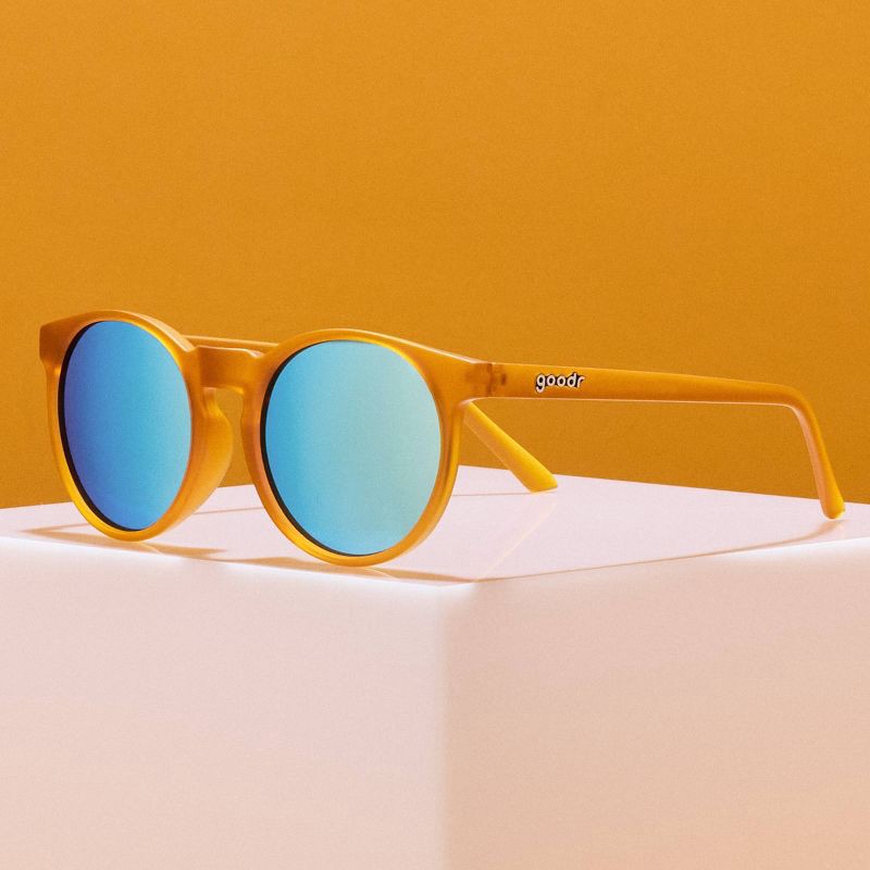 These orange round sunglasses are hotter than a tray of freshly baked man buns straight out of the oven. Featuring polarized light blue round lenses and full UV400 protection, they'll keep your peeper…