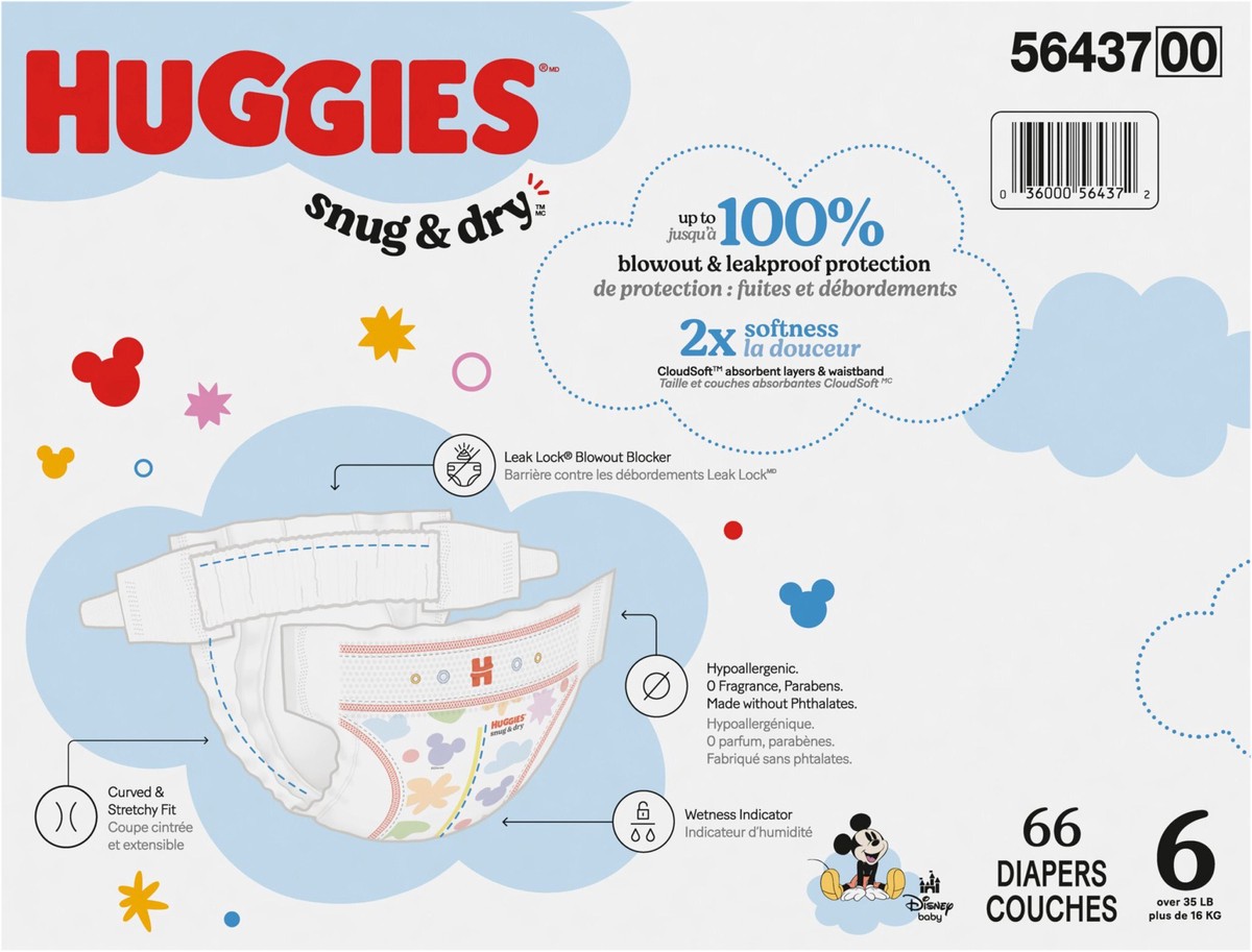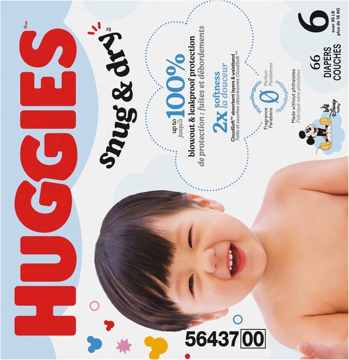 Huggies Snug & Dry Baby Diapers, Size 6 (35+ Lbs)- 66 Count
