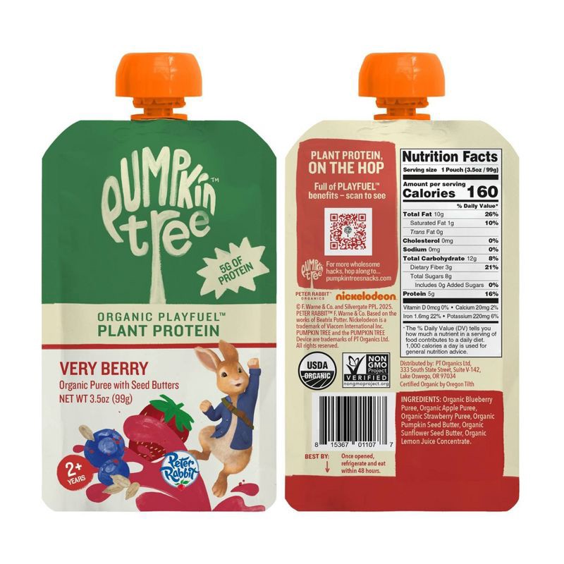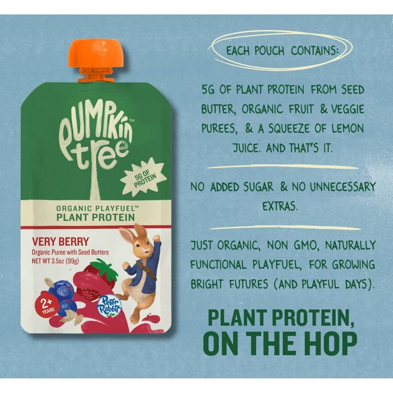Peter Rabbit Organics Pumpkin Tree Organic Playfuel Plant Protein Very Berry Pouch - 3.5oz: Toddler, Pureed Baby Meals, Ready to Eat