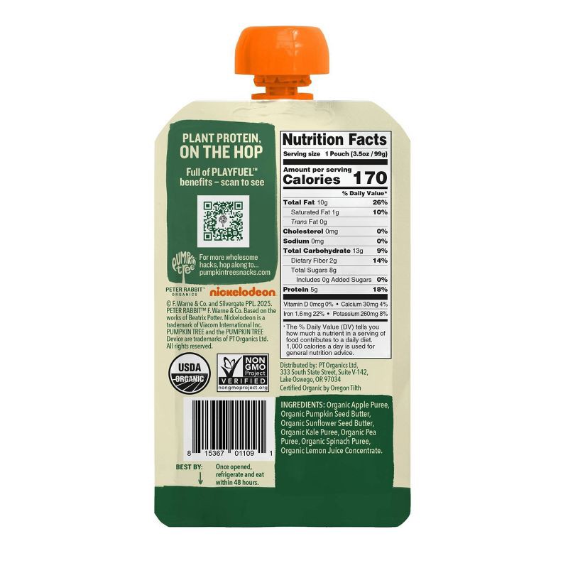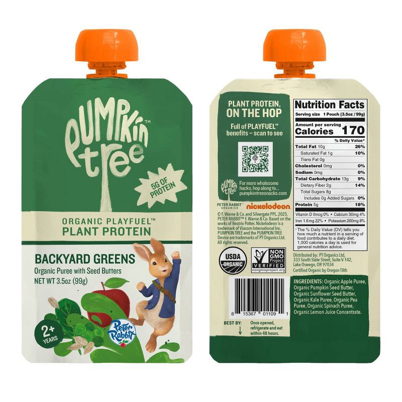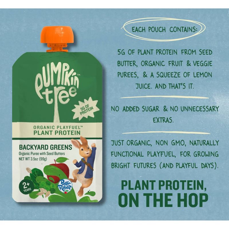 Peter Rabbit Organics Pumpkin Tree Organic Playfuel Plant Protein Backyard Greens Pouch - 3.5oz: Toddler, Pureed Baby Meal, Ready to Eat, Vegan