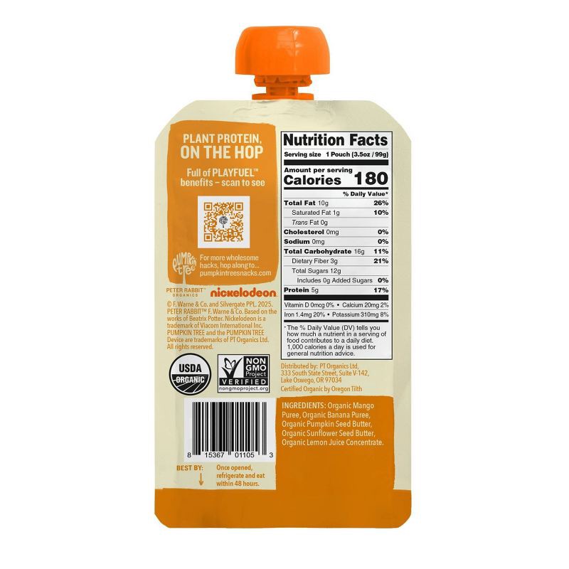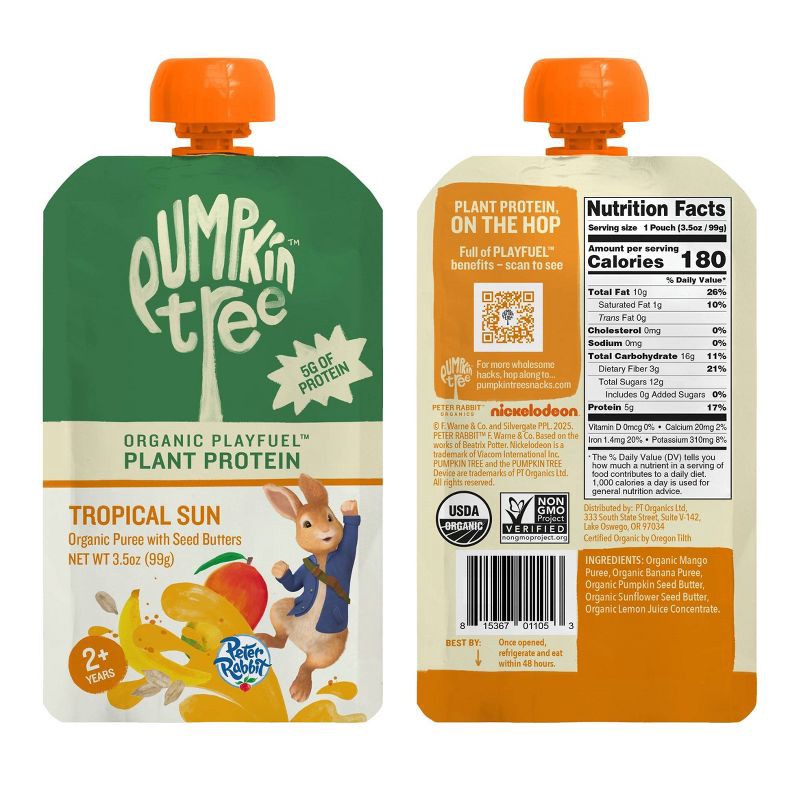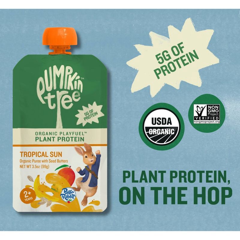 Peter Rabbit Organics Pumpkin Tree Organic Playfuel Plant Protein Tropical Sun Pouch - 3.5oz: Toddler Organic Puree, Ready to Eat