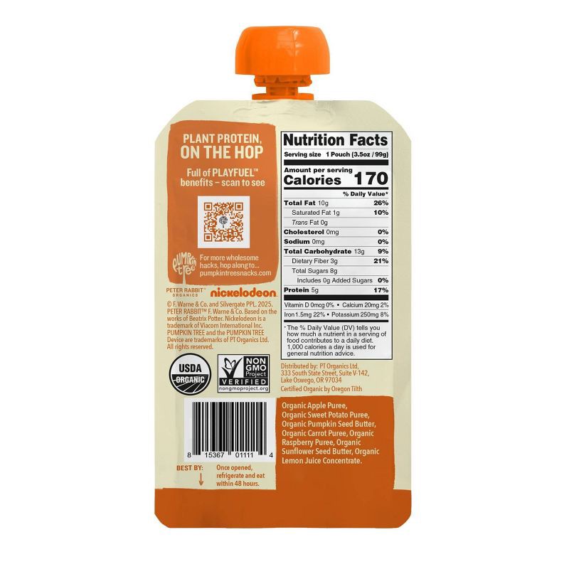 Peter Rabbit Organics Pumpkin Tree Organic Playfuel Plant Protein Backyard Roots Pouch - 3.5oz