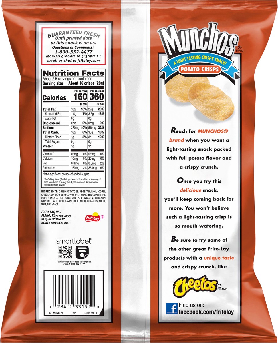 A light tasting crispy snack! Reach for Munchos brand when you want a light-tasting snack packed with full potato flavor and a crispy crunch. Once you try this delicious snack, you'll keep coming back…