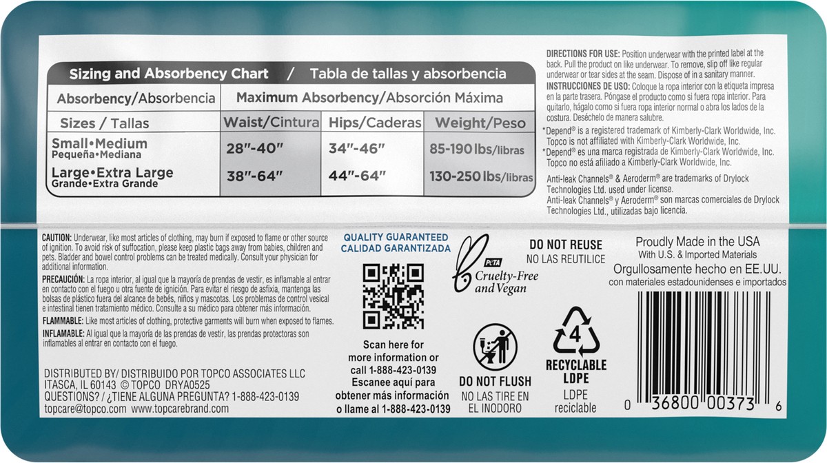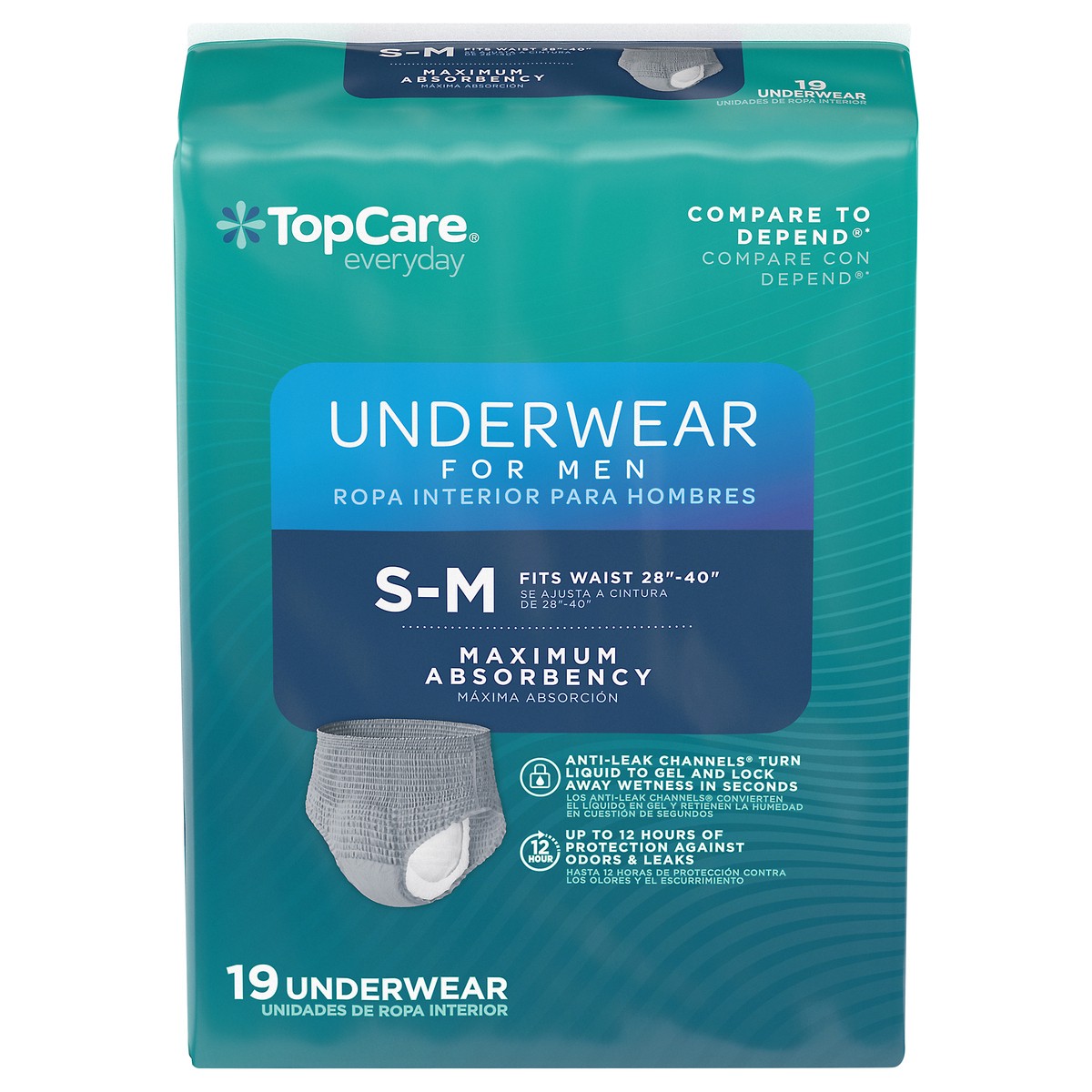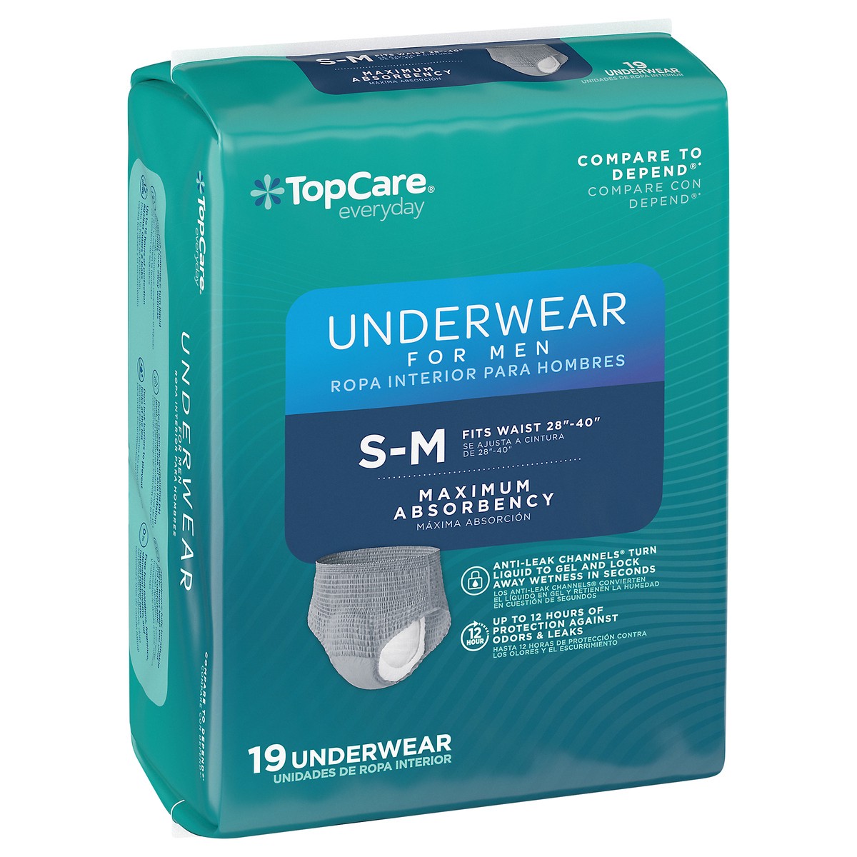TopCare Everyday Maximum Absorbency Underwear for Men S/M 19 ea