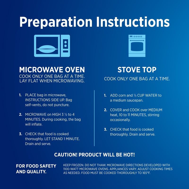 - One 10.8 oz bag of Birds Eye Steamfresh Gold and White Corn Frozen Vegetable
