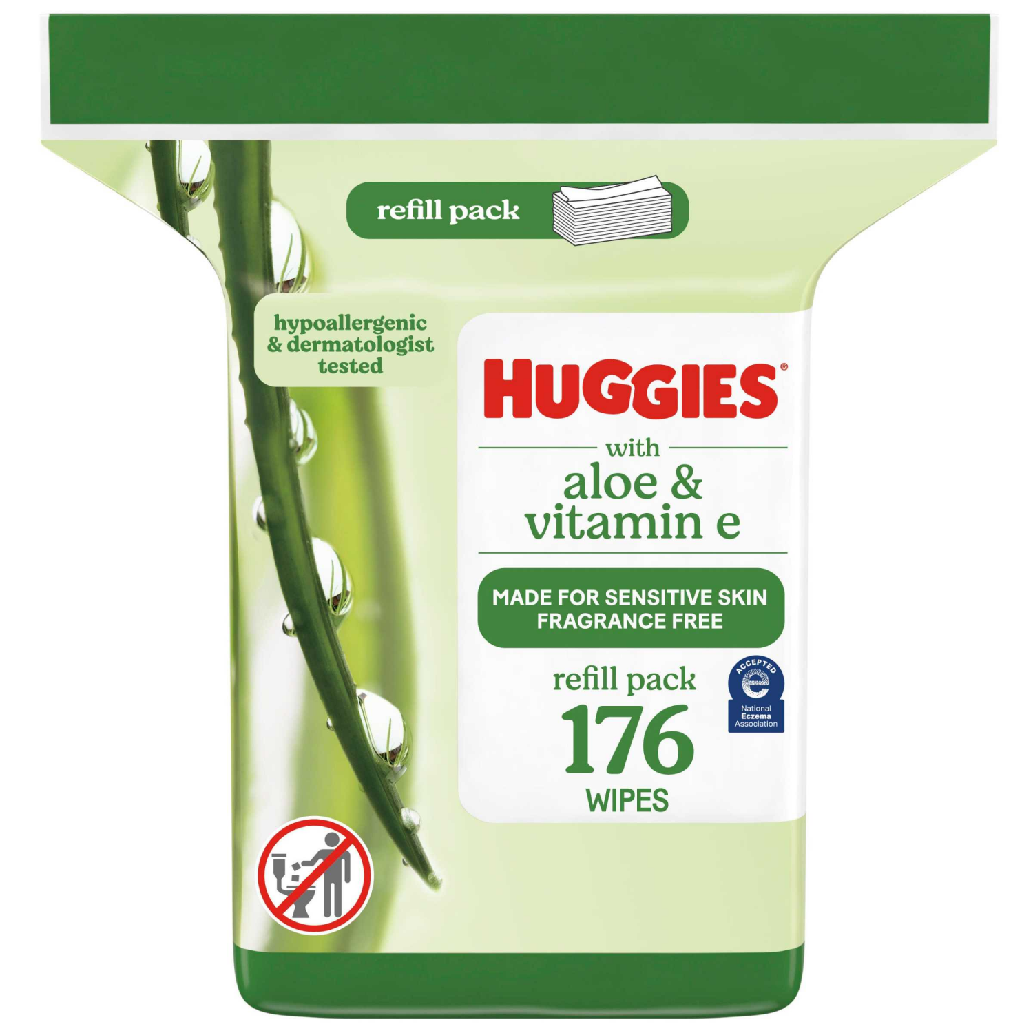 1 refill pack of 176 Huggies Wipes with Aloe & Vitamin E, Unscented (176 wipes total) Accepted by the National Eczema Association Plant-Based Wipes Since 1990: Huggies Wipes with Aloe & Vitamin E cont…
