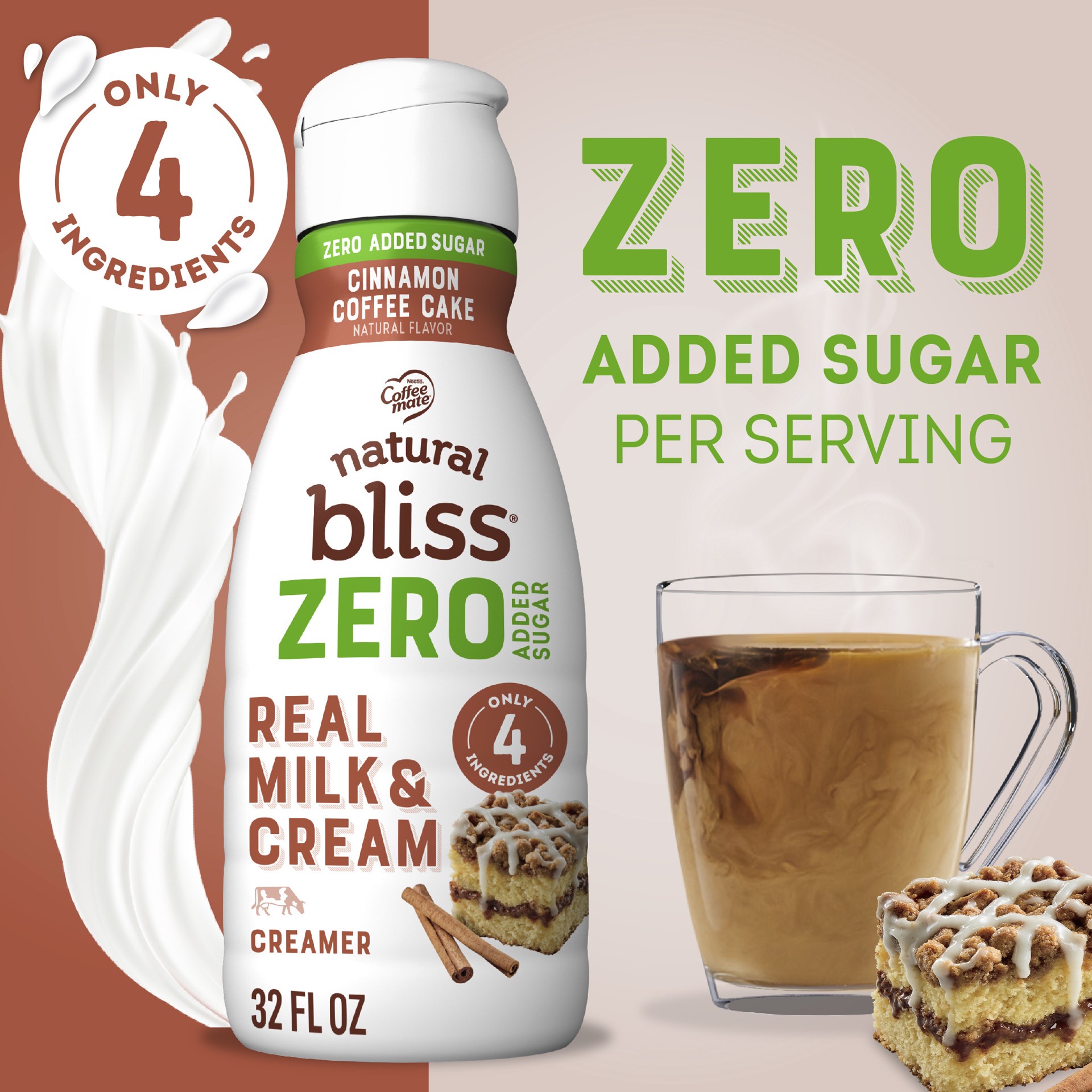 Our Coffee mate natural bliss Cinnamon Coffee Cake Flavored Coffee Creamer is a delightful coffee essential made with real milk and cream and zero added sugar that adds a touch of rich bliss to your c…