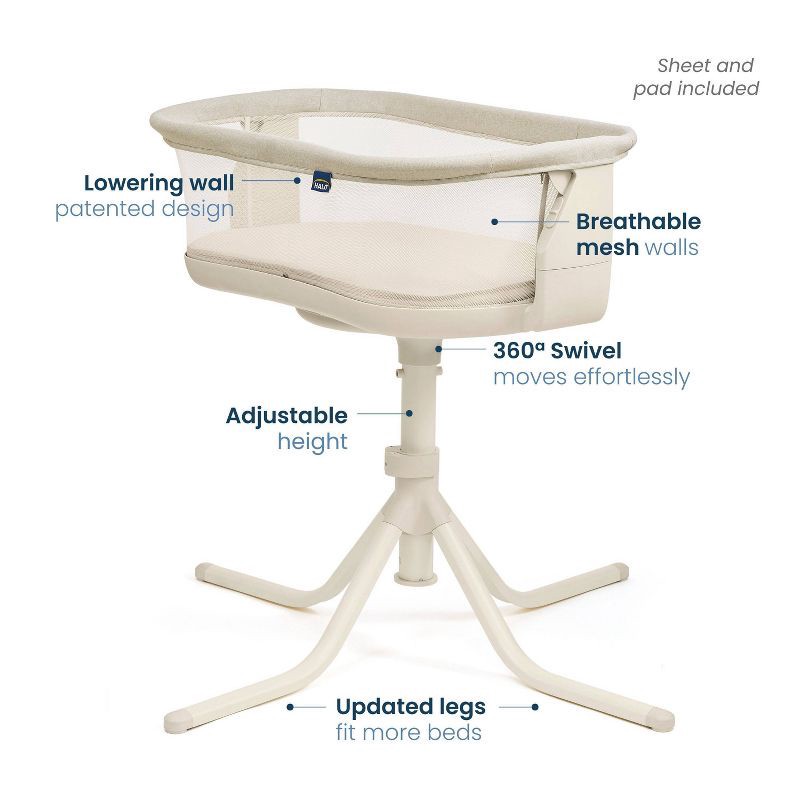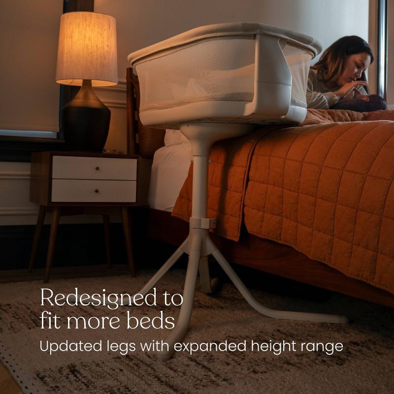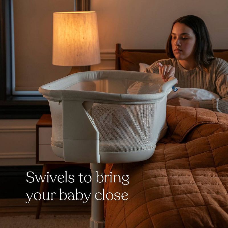 - Over-bed design: HALO's signature over-bed design brings your baby safely over your bed – so nighttime soothing and feedings happen right where you are, without getting up.