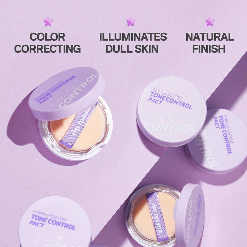 - Purple tone control powder helps correct yellow or dull skin for a more even, radiant complexion