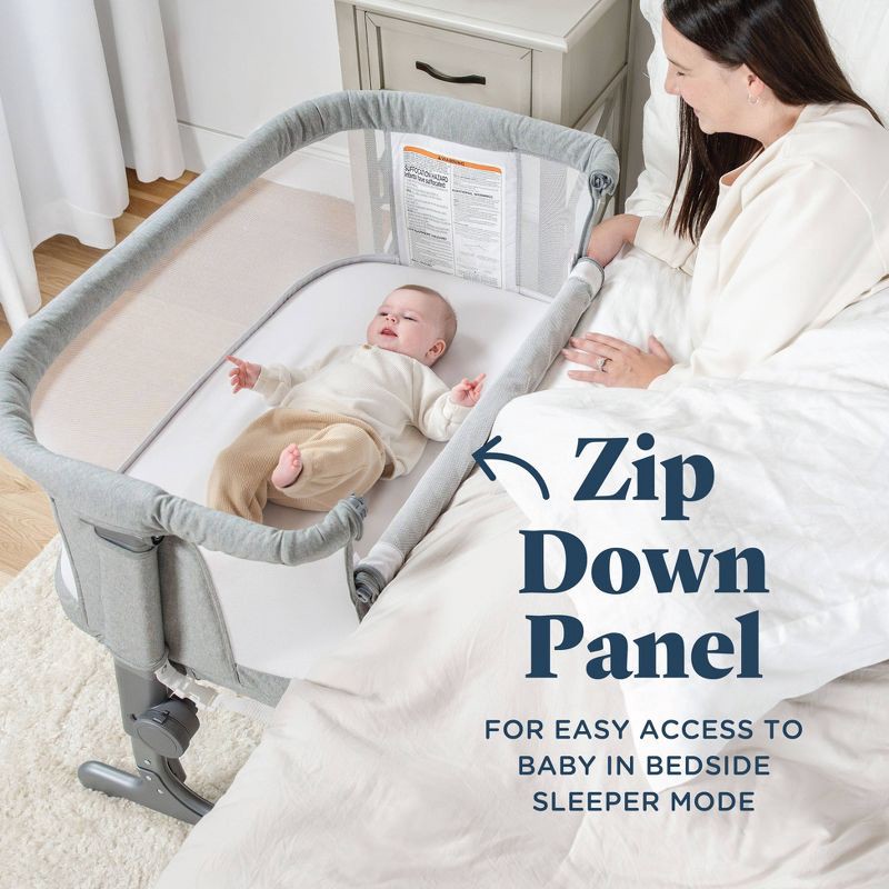 - TWO MODES: Zippered side panel opens for easy access to baby from bed in bedside sleeper mode