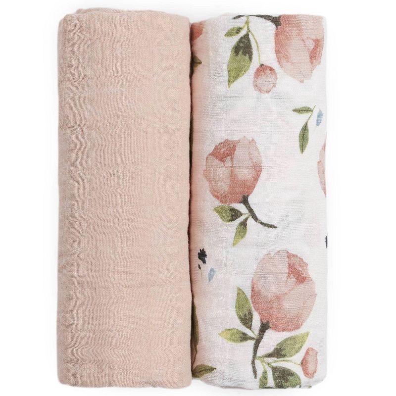 Little Unicorn Organic Swaddle Gift Set - Watercolor Floret - 2pk: Cotton, Woven, Abstract Pattern, 47x47