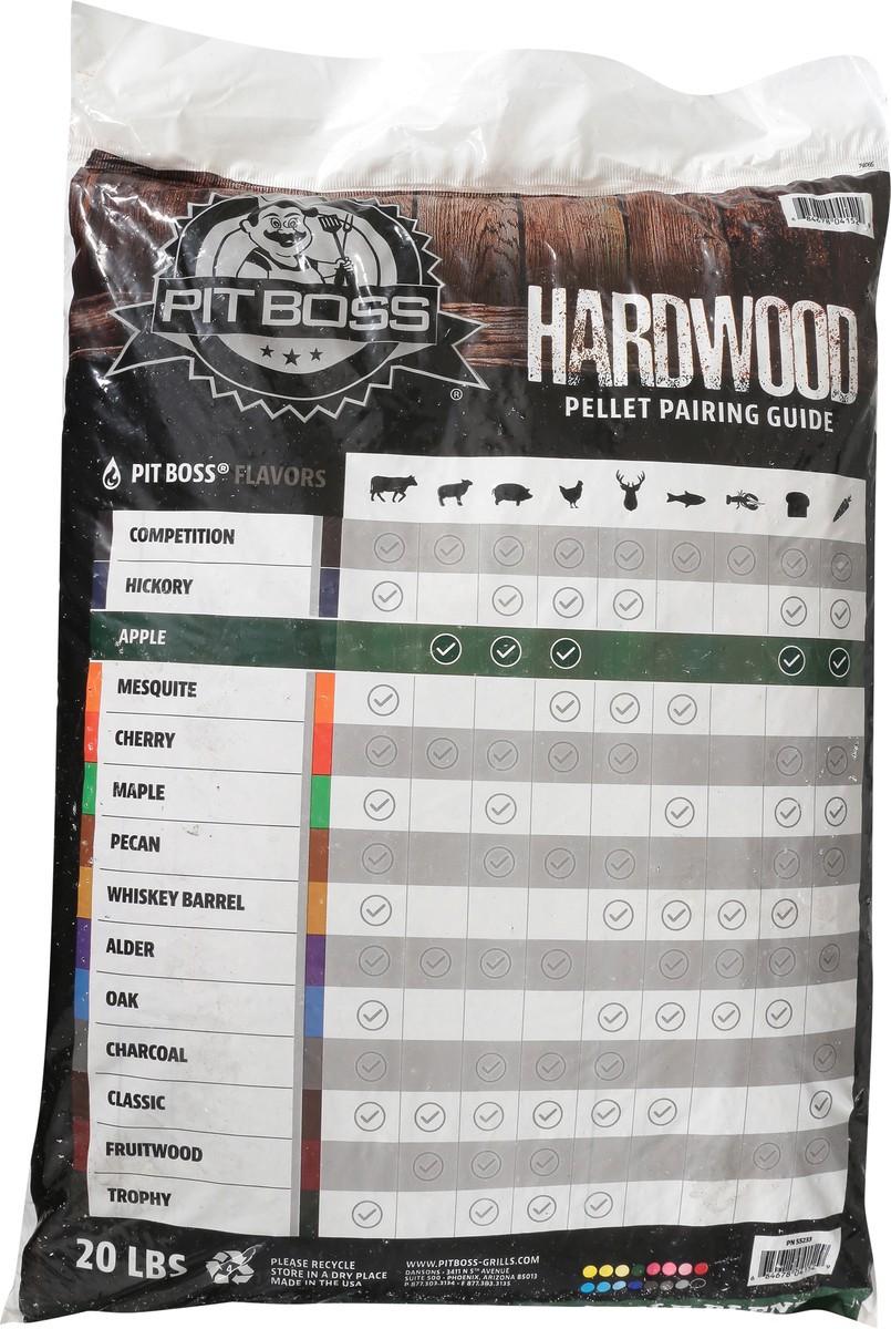 Pit Boss Apple Hardwood Pellets are the go-to blend for your all your smoking needs. The flavor is mild and fruity with a subtle sweetness that tastes best with poultry, pork, seafood, and lamb. Pit B…