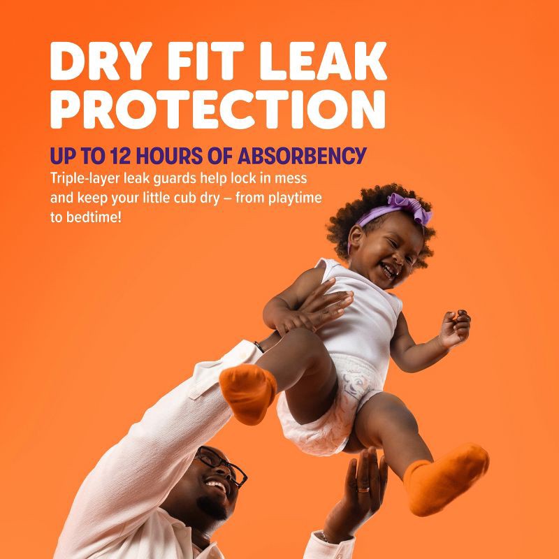 - DryFit™ Leak Protection and triple-layer elastic leak guards help lock in mess and keep your little cub dry — from playtime to bedtime.
