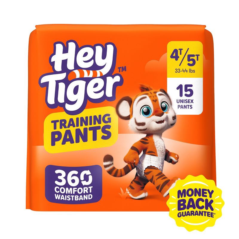 Hey Tiger Training Pants are made to protect playtime — and support potty training. Designed for busy explorers, they feature a 360° Comfort Waistband that stretches, flexes and moves with your little…