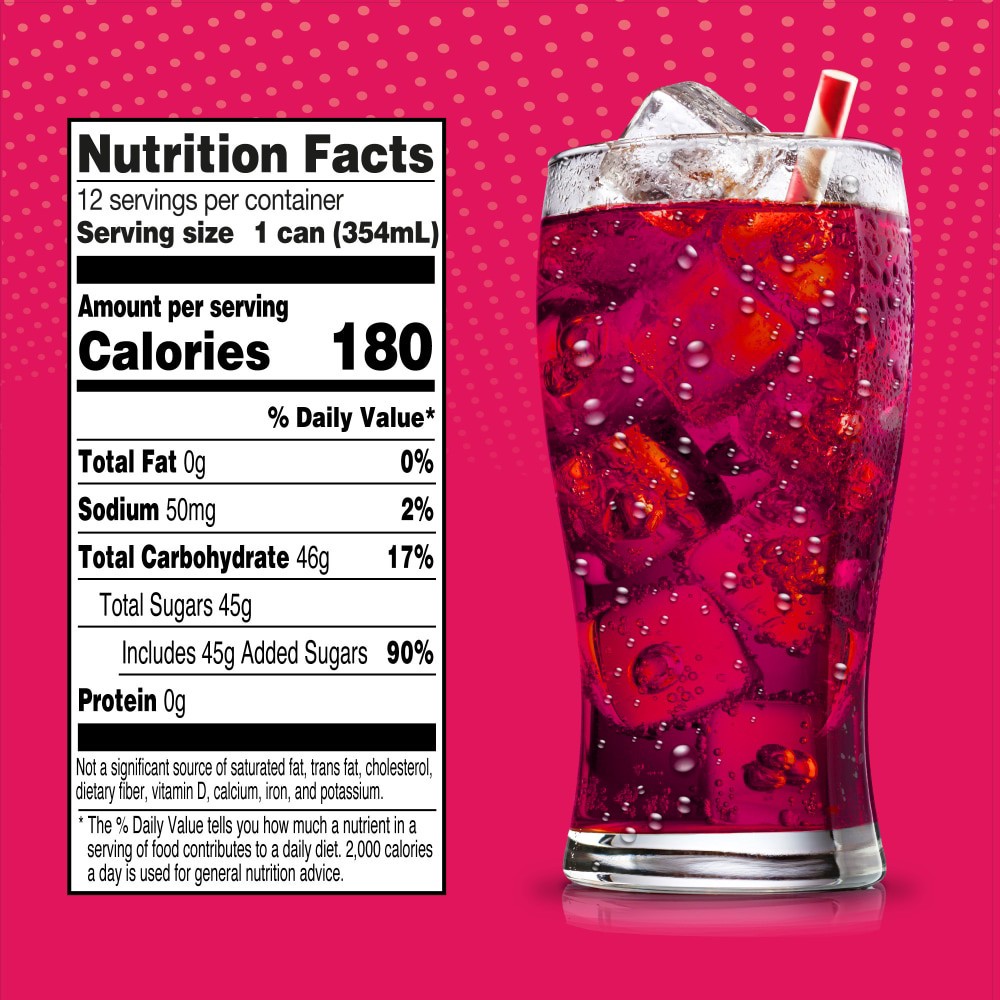 Carbonated Water, High Fructose Corn Syrup, Natural and Artificial Flavors, Red 40, Sodium Benzoate (Preservative), Citric Acid, and Caramel Color.